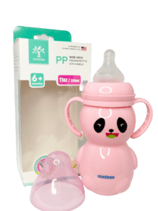 Adorable Panda Design and Ergonomics Visual stimulation plays a huge role in a child’s engagement with their surroundings. The Mimitree bottle features a delightful pink panda face that instantly captures a baby’s attention. This playful design helps reduce “bottle resistance” by making the object look like a toy rather than a chore. Combined with the Wide-Neck Baby Feeding Bottle with Handles’ structural integrity, it is the perfect blend of fashion and function for the modern nursery.